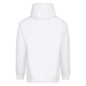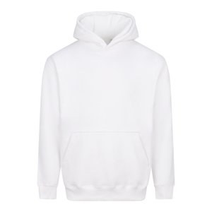 3-panel hood without drawstring. Kangaroo pocket. Brushed interior. 100% cotton outer surface for better shape retention. Ribbed cuffs and hem.