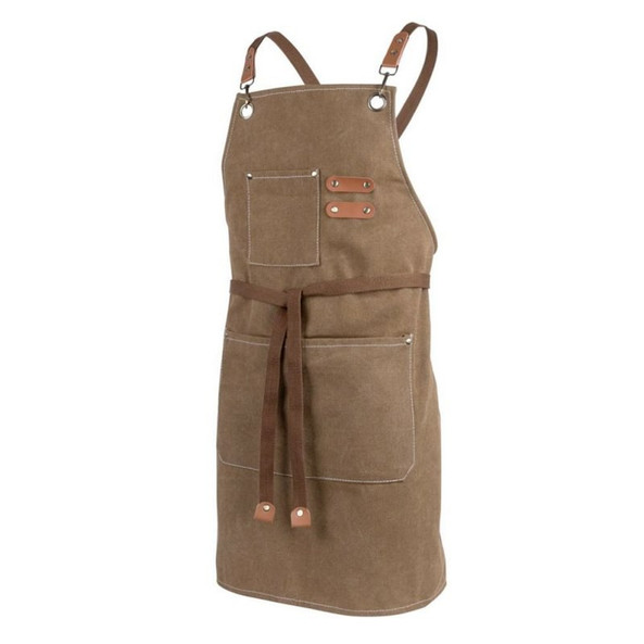 Kitchen apron made of 50% cotton and 50% polyester, two large pockets on the front and one pocket on the chest with PU details. Shoulder strap fixed with carabiners, PU details on the shoulder strap. Adjustable strap.