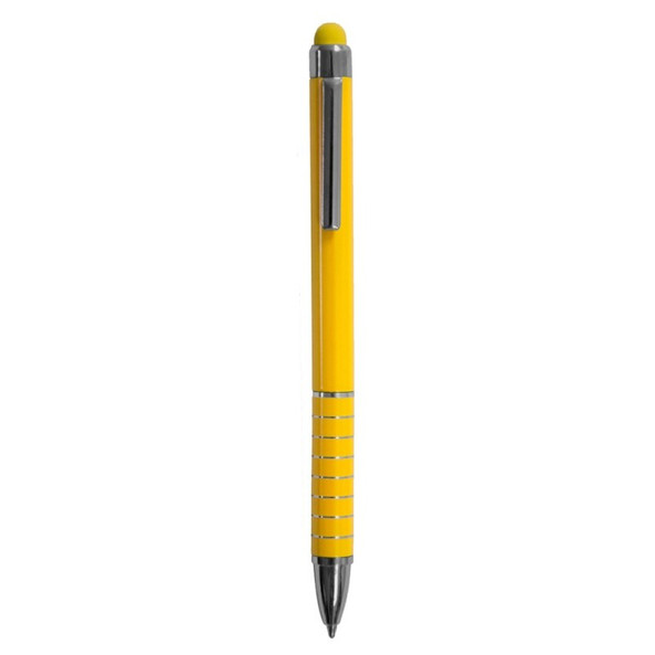 Use the ballpoint tip for writing and the rubber tip for touch screens.