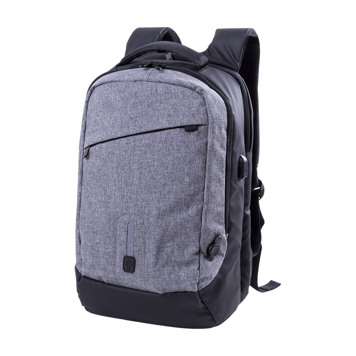 Powerbank, business, backpack in high quality waterproof nylon. Including an auxiliar battery of 8,000 mAh charging capacity and a USB output for total comfort in charging any mobile device. Type C and micro USB dual charging cable included. 2 padded, inside, independent, compartments for laptops up to 17 inches and tablets up to 12 inches. Wide range of inside and outside pockets. Shoulder and back straps with ergonomic padding.