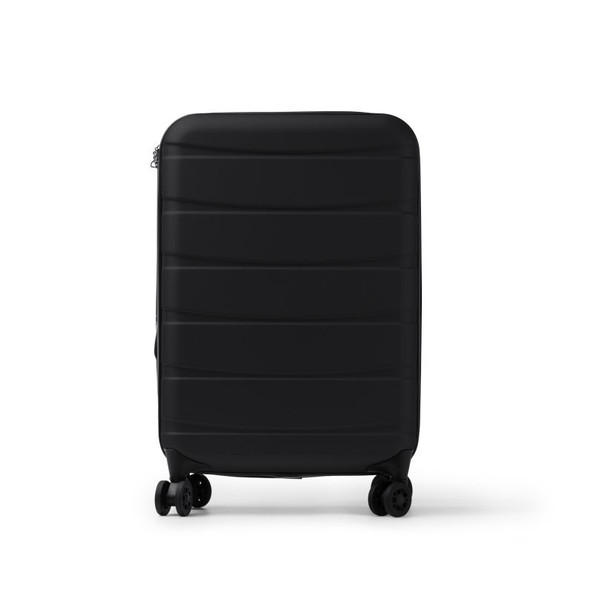 Expandable cabin trolley. Telescopic handle. Four swivel wheels. Stretch fabric made of RPET. Main compartment with clothes securing strap.