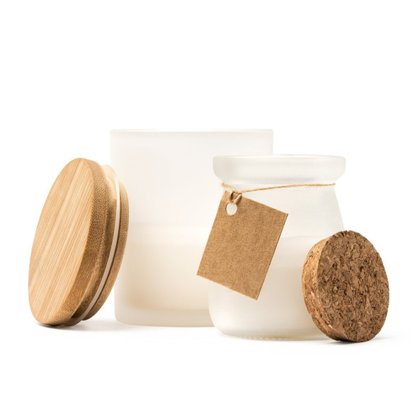Scented candle in frosted glass with lid. Vanilla fragrance Supplied in an eco design single pack.