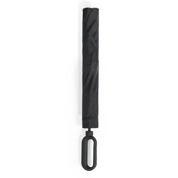 2 section foldable golf umbrella with automatic opening. Fiberglass shaft and metal ribs. With carabiner handle. Supplied with pouch.