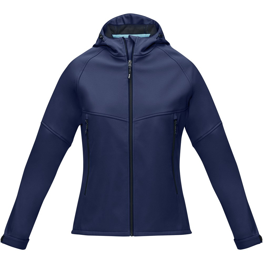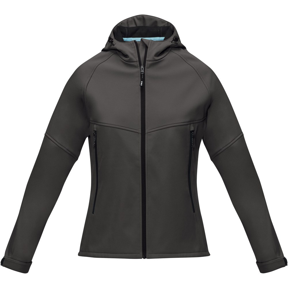 The Coltan women's GRS recycled softshell jacket – a fusion of style and performance. Developed with the environment in mind, this jacket is GRS certified, featuring a woven fabric composed of GRS certified recycled polyester, virgin polyester, and elastane. The 280 g/m² construction offers a perfect balance of durability and comfort, while the three-layer bonded design of woven, TPU, and microfleece ensures maximum protection against the elements. With an 8000 mm waterproof rating, the Coltan jacket keeps you dry and shielded from rain, while the 2000 g/m² breathable feature allows for excellent ventilation, preventing moisture and overheating during intense activities. This jacket is equipped with GRS certified trims and accessories, including zippers, drawstring, and cordlock. The adjustable cuffs with hook and loop closure allow you to customise the fit for maximum comfort and ease of movement. Embrace style and performance - the Coltan is the ideal companion for outdoor adventures, offering unbeatable functionality. With GRS certification guaranteeing a 100% certified supply chain, this garment truly represents a more sustainable choice. This jacket is designed with a fitted shape for a feminine look.