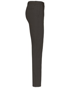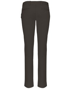 Women's stretch cotton chino pants (245 gsm) providing a professional look with maximum comfort. These K741 pants feature a straight, fitted cut for a slim appearance. Made from high-quality cotton twill with 2% elastane, they offer flexibility for active work environments or casual wear. The design includes functional elements like belt loops, two side pockets, a ticket pocket, and two reinforced back welt pockets. Ideal for bulk purchasing, these chinos are perfect as blank workwear or a premium base for custom branding. The smooth twill surface is highly compatible with embroidery and screen printing for corporate logos.