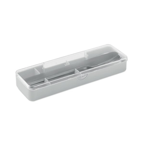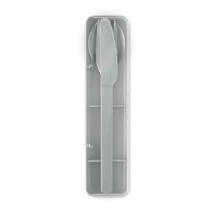 This set includes a fork, knife and spoon.