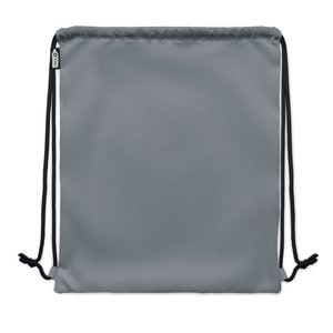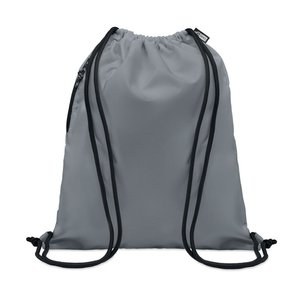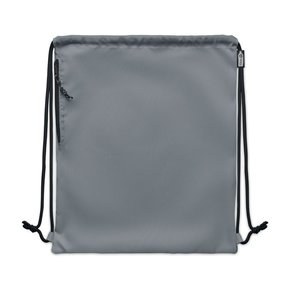 Large drawstring bag in 300D RPET polyester with side zippered outer pocket.
