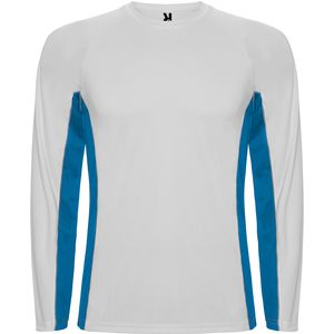 Roly CA6670 - White/Royal Blue - SHANGHAI L/S Long-sleeve technical raglan t-shirt with a combination of two polyester fabrics