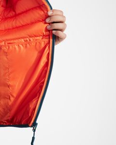 Shell: 100% polyester, 300T.Lining: 100% polyester.Wadding: 100% polyester, feather effect.290 gsm.