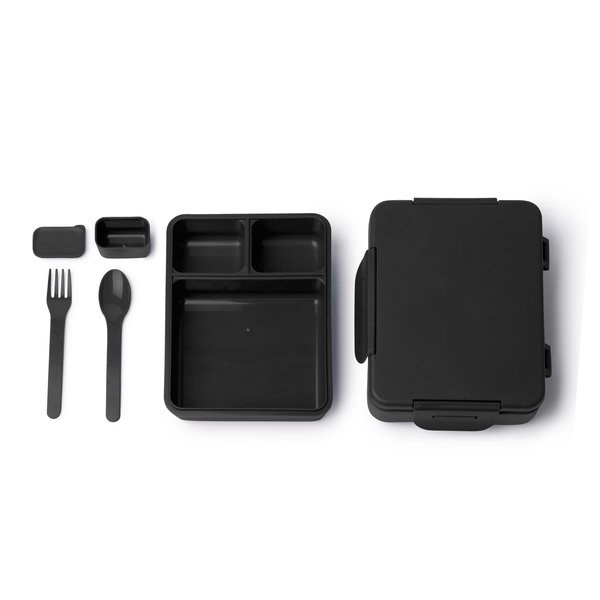Lunch box with a 1.3 L capacity made from PP, featuring three independent compartments of different sizes that keep food separated at all times.