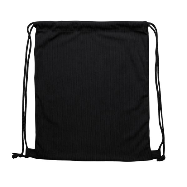 Drawstring backpack made of corduroy fabric.
