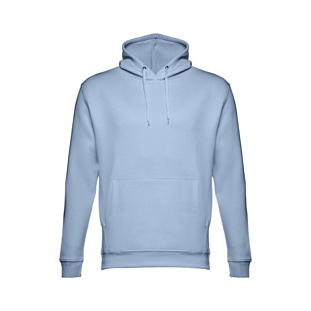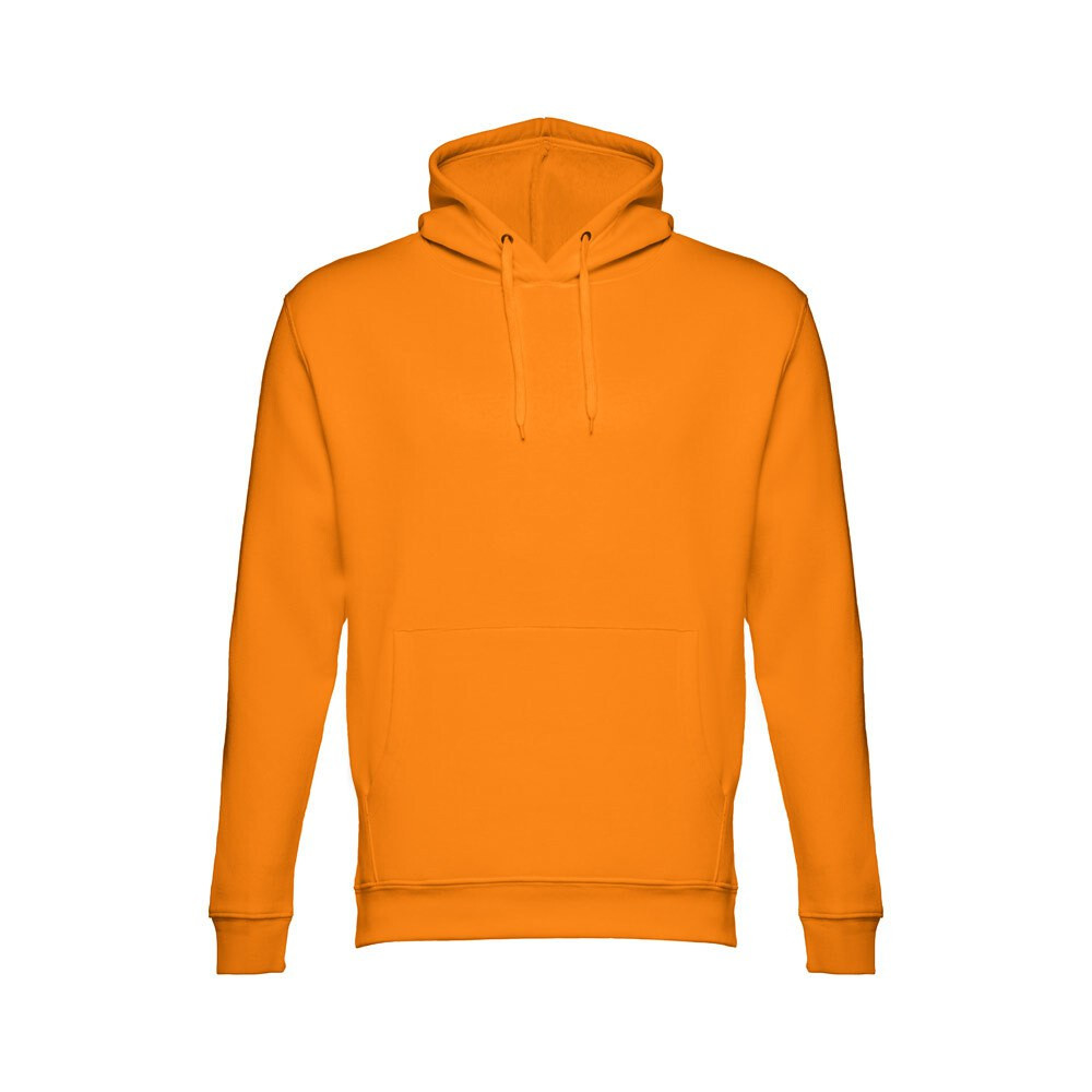 Hooded sweatshirt (unisex) in 50% cotton and 50% polyester (320 g/m²) with carded interior. The hood includes eyelets and fastening cord in matching colour. Sweatshirt with marsupial pocket and 1x1 Rib on the cuffs and waistband