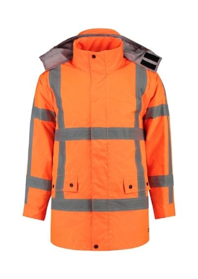 Get the necessary equipment to be able to work on a construction site, starting with this RWS Parka unisex work jacket T50 , a product of the Tricorp brand . This is a specific model that has attributes that meet safety standards for construction and public works workers. It is distinguished by a body and long sleeves with a high visibility color , namely fluorescent yellow, very effective in identifying individuals who wear this garment especially at night. This work jacket is made of a waterproof material , and features a removable thermal lining which is intended for use during the rainy and winter seasons. Breathable , it has sleeves with ventilation buttons and slips on easily over everyday clothes. The retro-reflective bands trace wide ribbons perpendicular and gray in color on the sleeves and on the body.